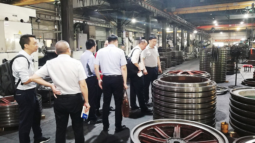 會后,在董事長傅開實陪同下,專家組一行人走進(jìn)車間,深入了解公司的生產(chǎn)情況以及針織大圓機(jī)的制作工藝。